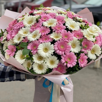 Букет из 101 белой и розовой герберой | Купить в Варшаве